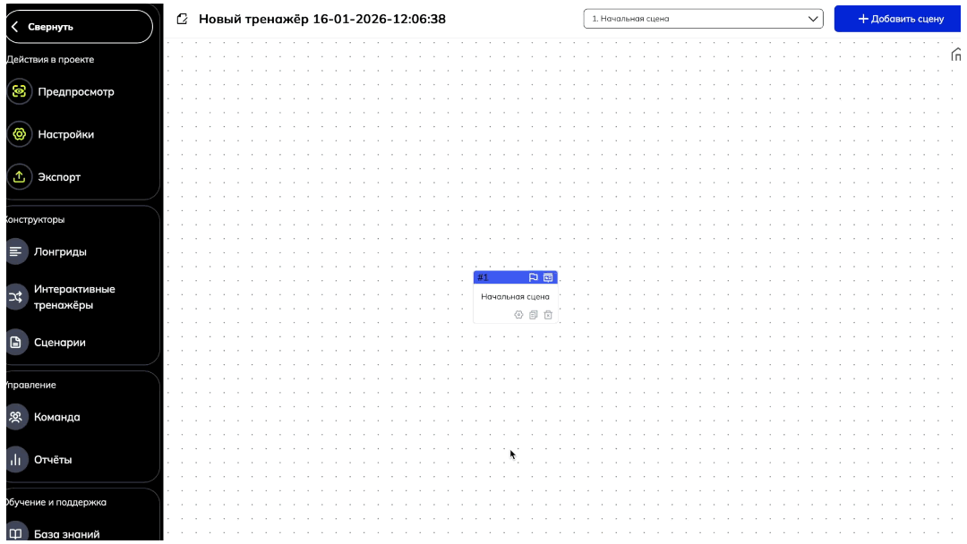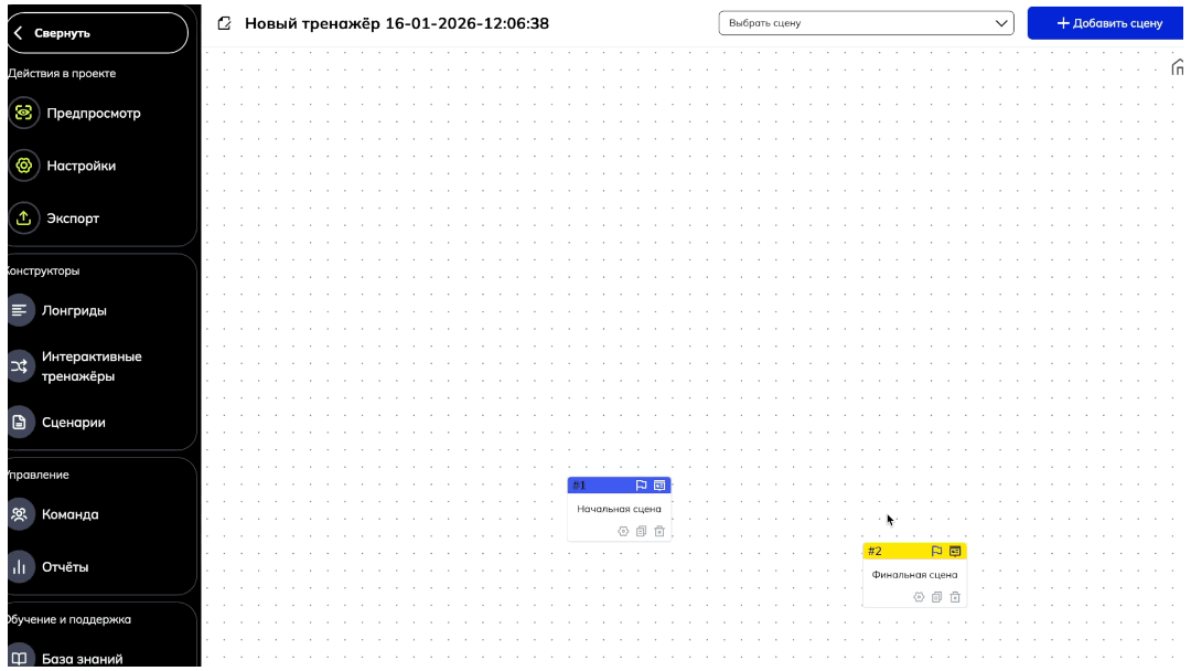 Как отдельно добавить сцену в конструкторе можно посмотреть в этой в статье "Интерфейс раздела и создание нового тренажера"