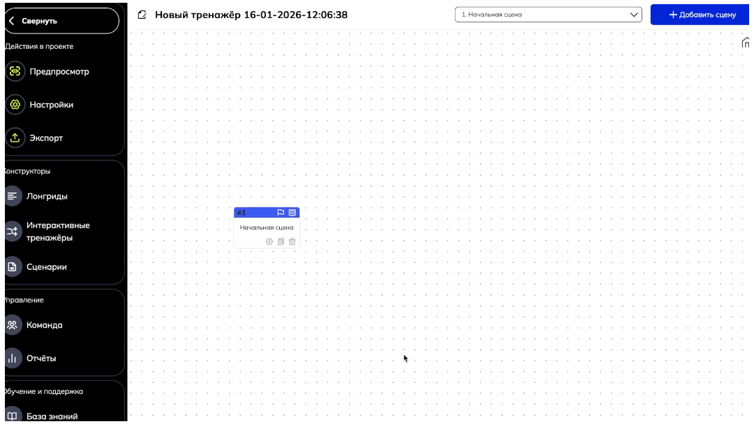 Как отдельно добавить сцену в конструкторе можно посмотреть в этой в статье "Интерфейс раздела и создание нового тренажера"