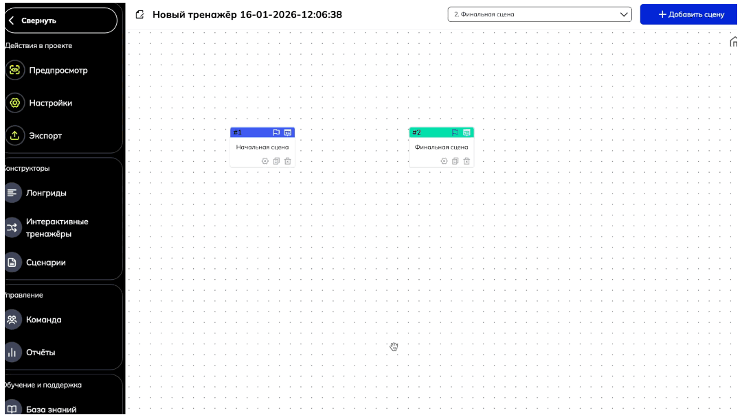 После того, как в вашем тренажере есть начальная и финальная сцена, можно начинать настраивать переходы внутри тренажера, согласно вашему сценарию.